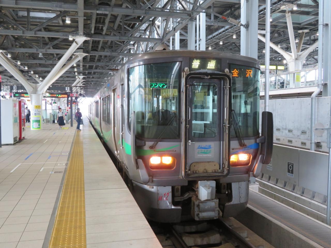 北陸新幹線が開通した犠牲で北陸本線の一部はJRから第三セクターとなり、金沢から倶利伽羅まで(17.8km)はIRいしかわ鉄道、倶利伽羅から富山まで(41.6km)は あいの風とやま鉄道に乗車。