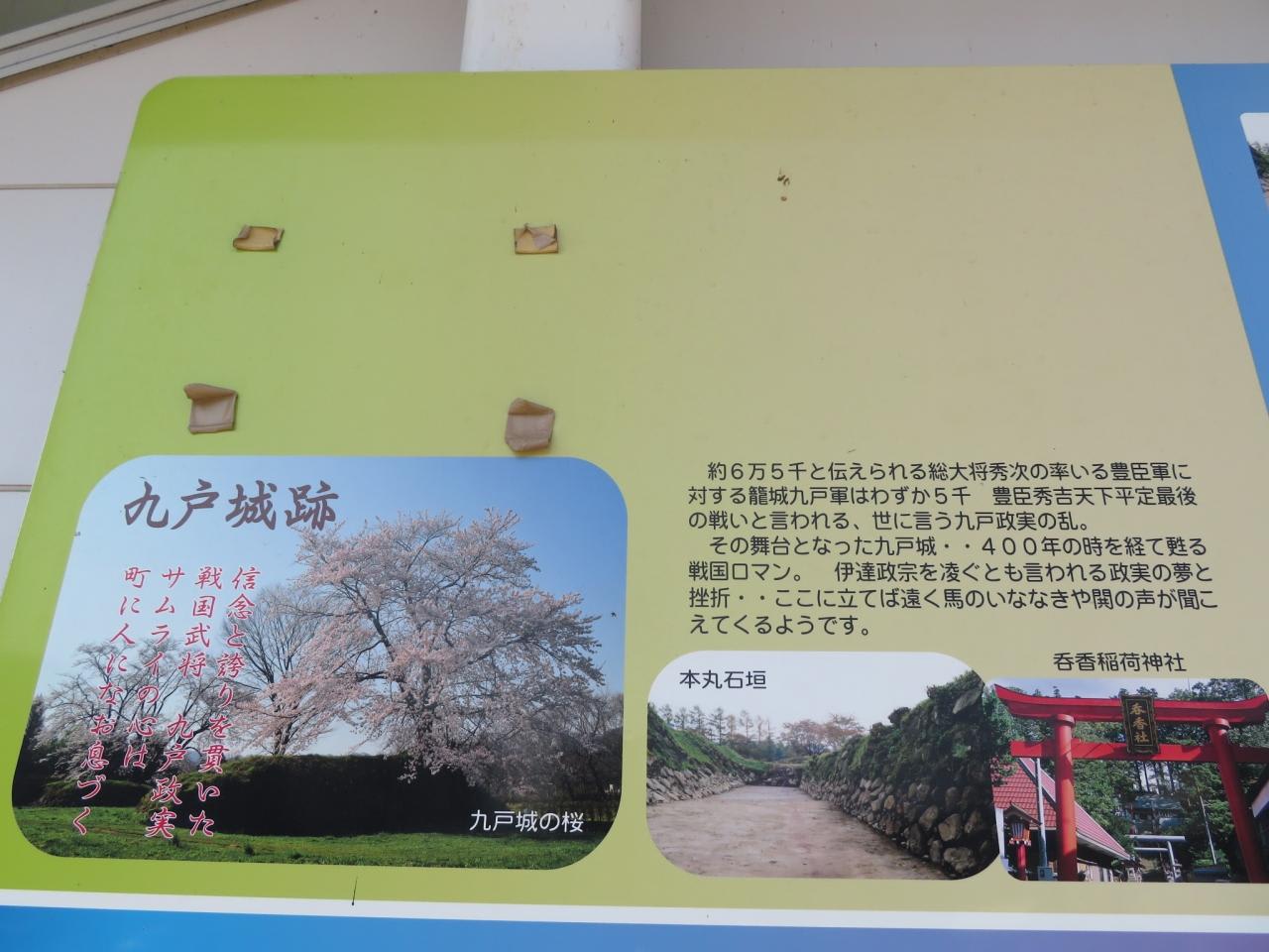九戸城(福岡城)は駅から1km以上離れていて、時間的に歩いて行って帰れる余裕がないので観光案内を読んで九戸城に行った気分に浸りました。
