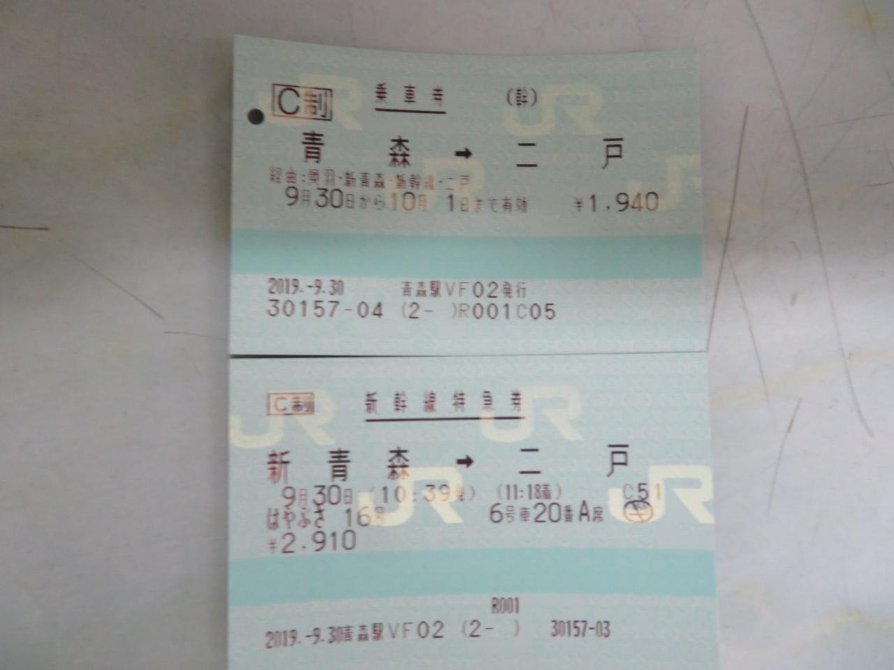 岩手県に最速で行く為に東北新幹線を利用し、二戸まで乗車券と特急券を購入。