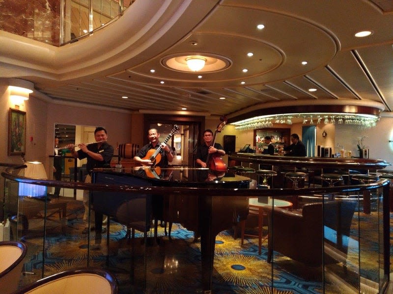 プロフィールを見る出航後、5階のレセプション横のピアノバーで生演奏をしていました。