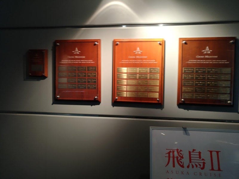 飛鳥Ⅱ1000泊以上された方々のプレート