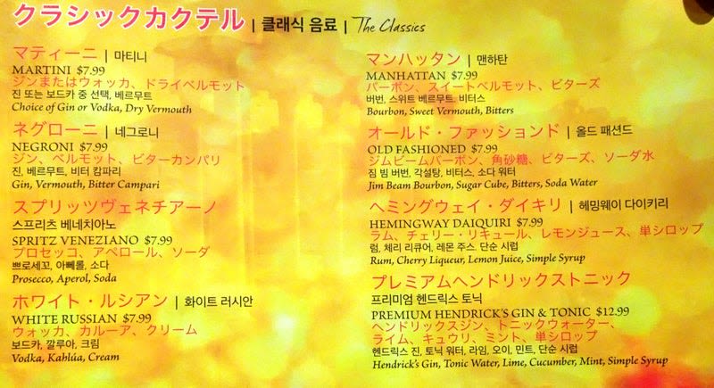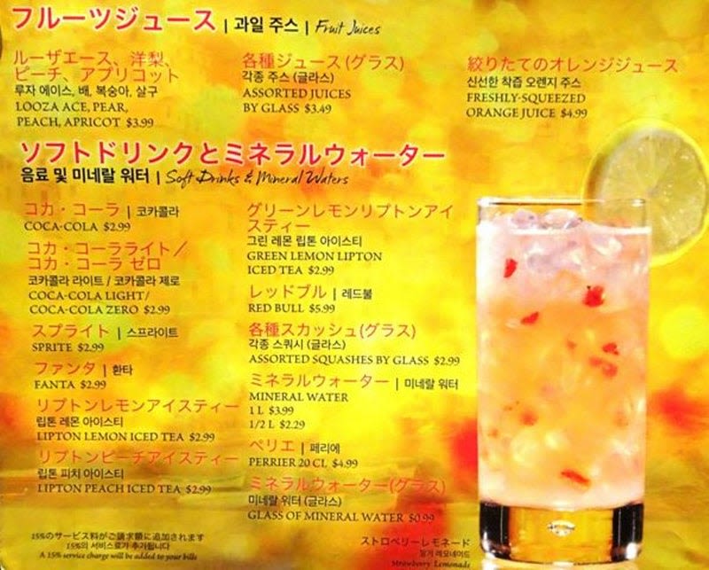 $20のメニュー(ソフトドリンクのみです)
