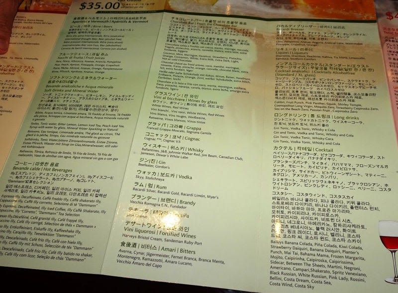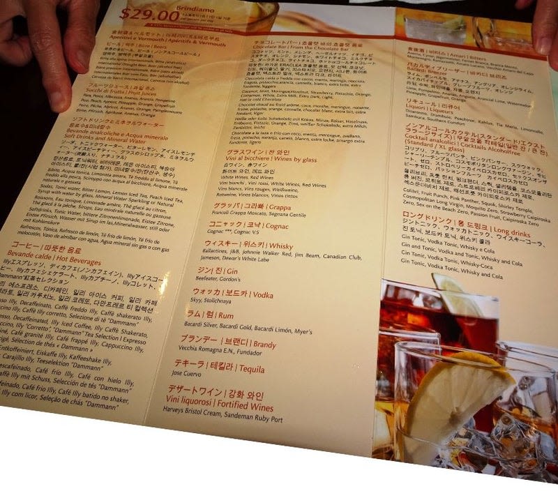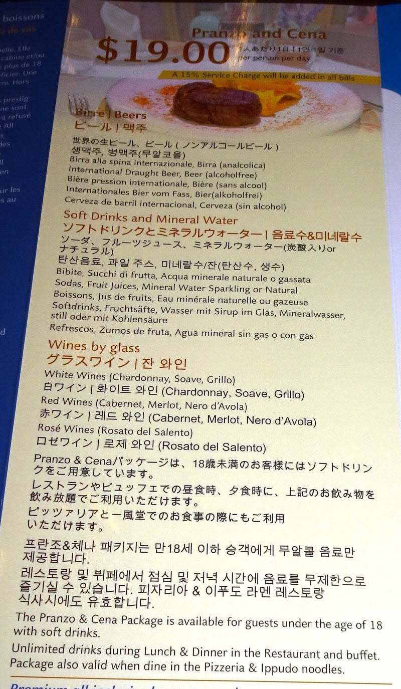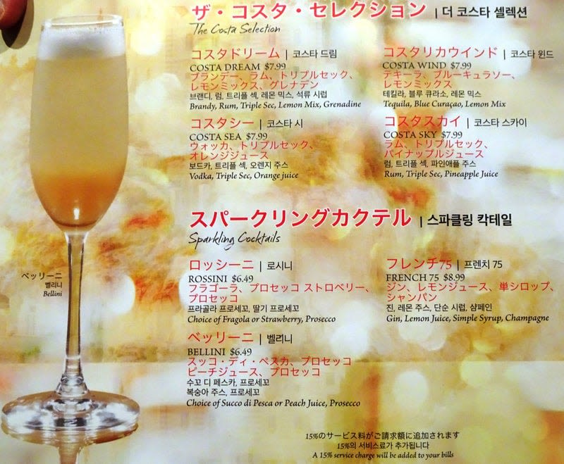 コスタネオロマンチカ乗船記(ドリンクメニュー、ドリンクパッケージ)