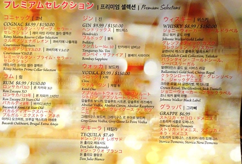船上のメニューでは、19ドル、20ドル、29ドル、35ドル、49ドルと5種類あります。