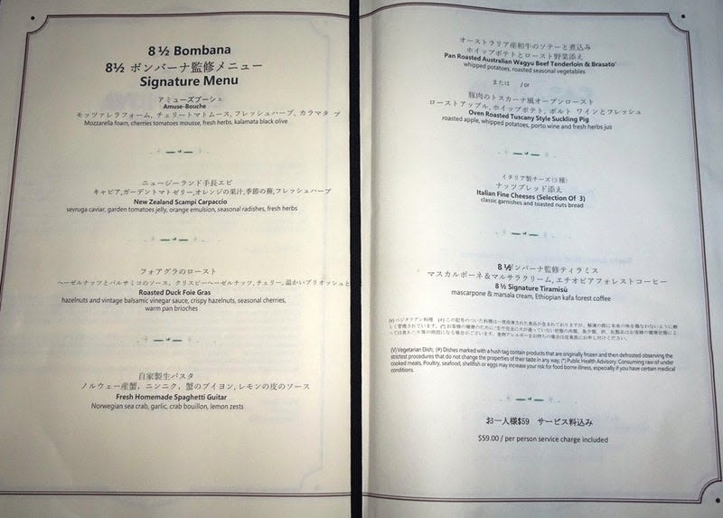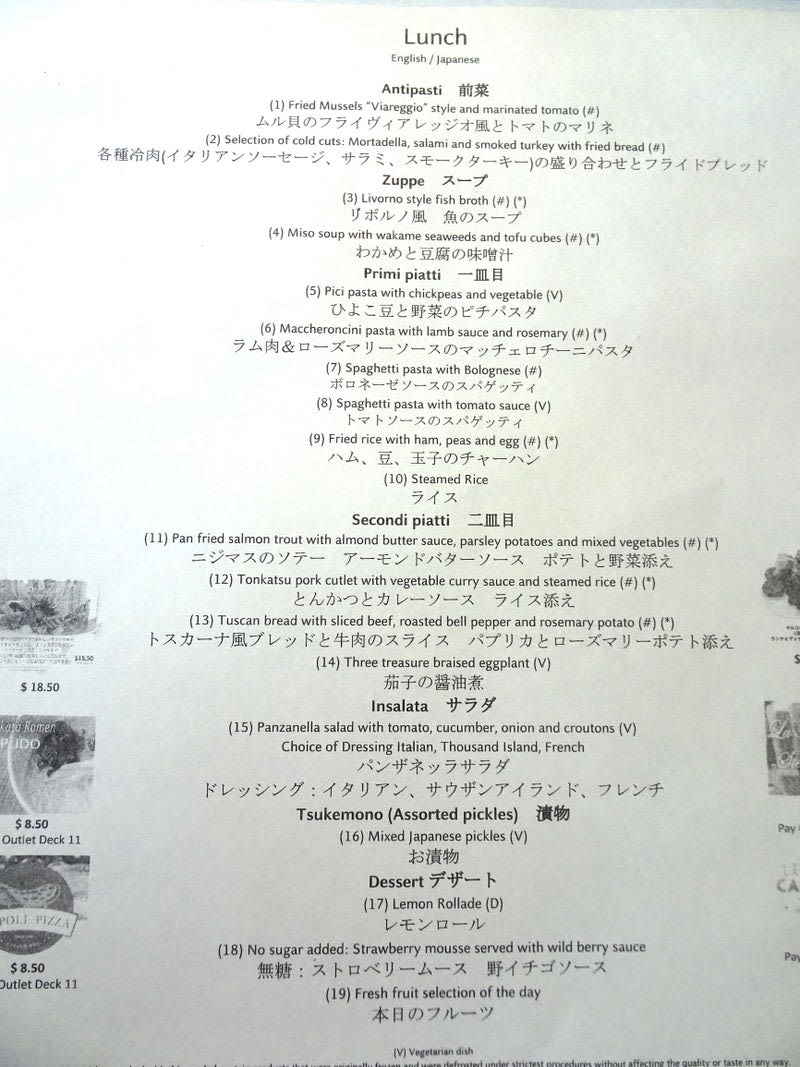 最後に$59のイタリアンレストランのメニュー(食べてないです)