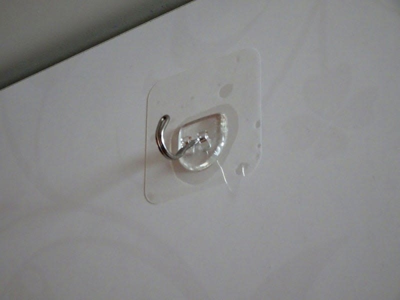 磁石式のフックは使えないので粘着式のフックを持っていきました