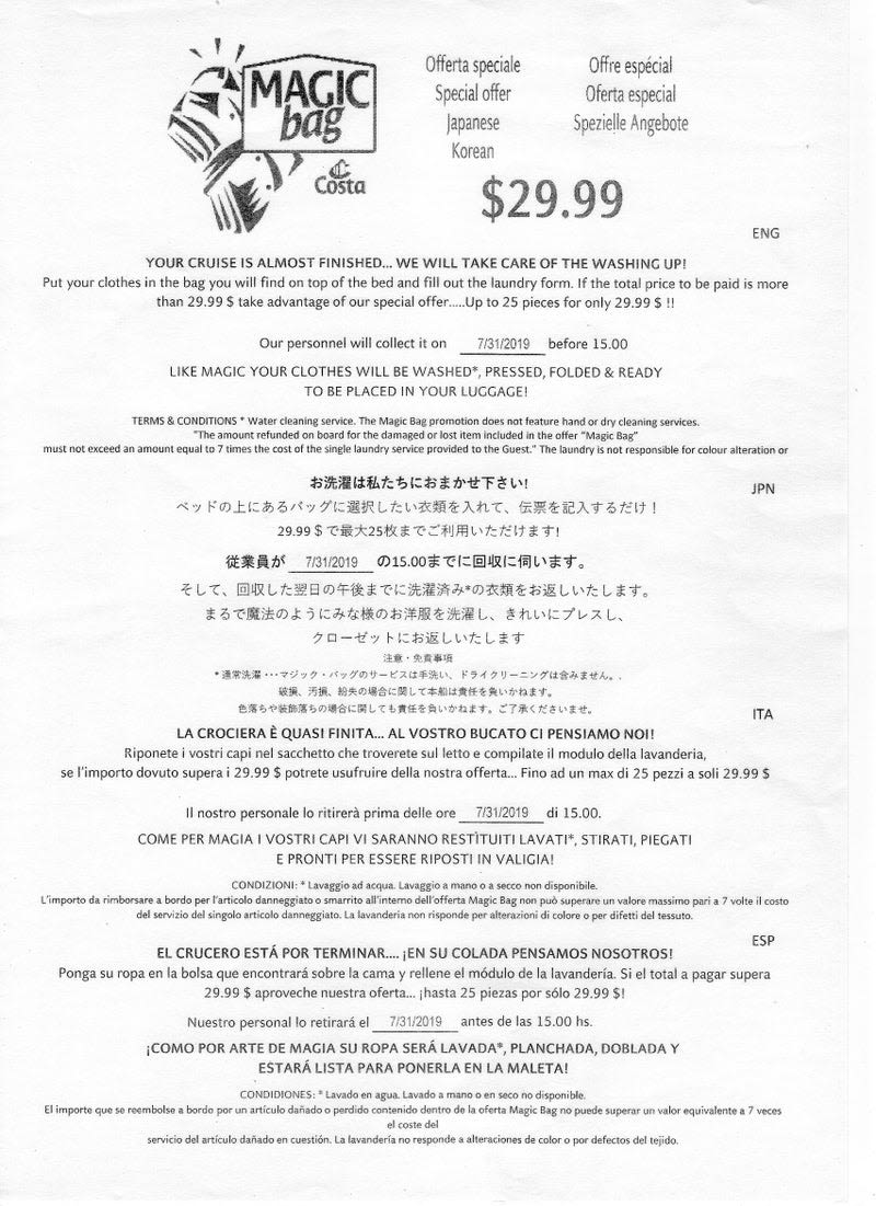 4日目に「$29.99で俺らが25枚まで洗濯するから使ってくれや」みたいな案内が入っていましたwww