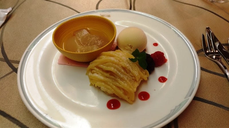 メインプレートのお料理は、ハーフサイズにしてもらっています。