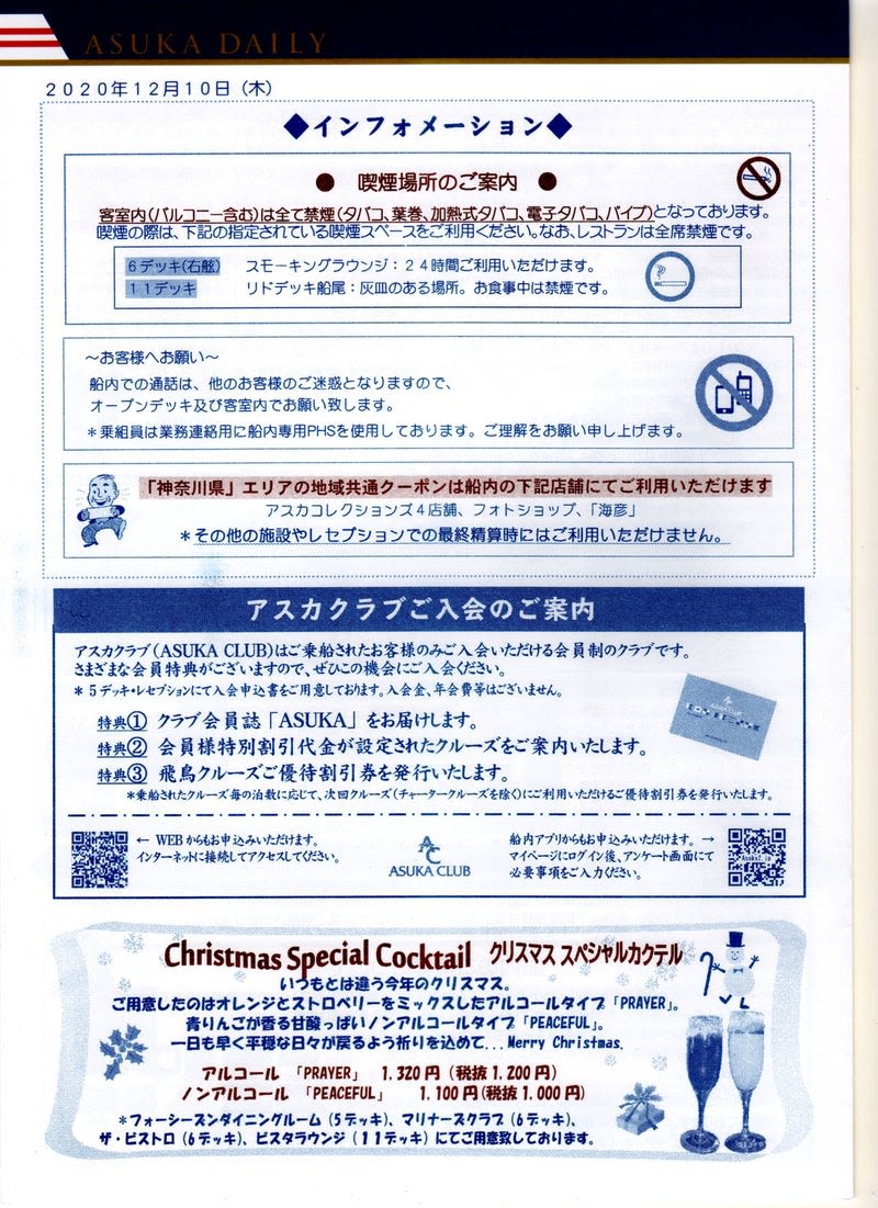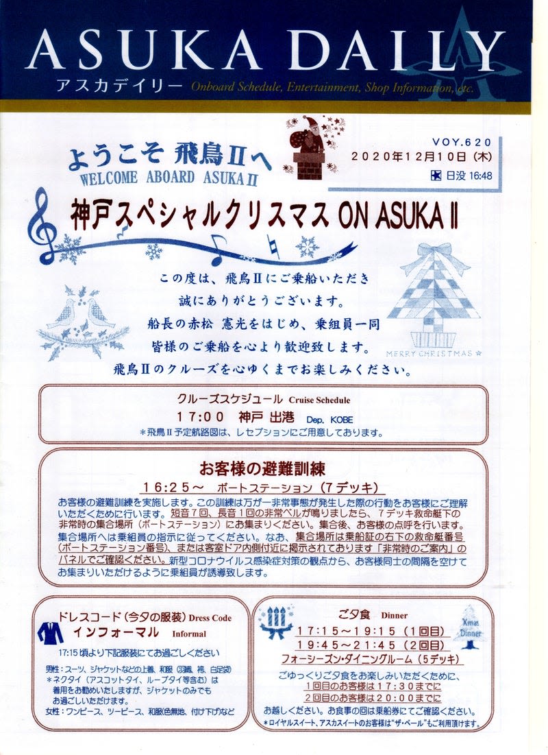 2020年12月10日~12日に乗船した飛鳥Ⅱ