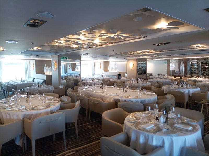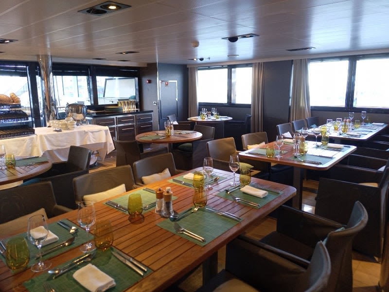 南極海など揺れが激しい海域に行くので一番揺れにくいところにダイニングを作っているそうです