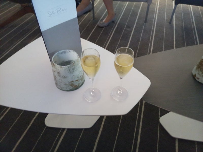 座っているとウェルカムシャンパンがきました