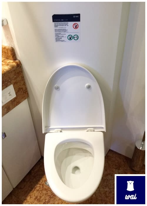 真空吸引式(新幹線と同じ吸い込むタイプ)のトイレでした。こちらも毎日ピカピカにしてくれています。