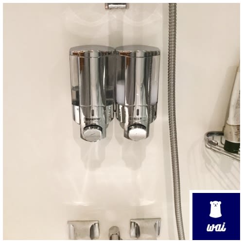 持ち込んだシャンプーなどを置いておける壁のラックも2か所あり、使いやすいバスルームでした。