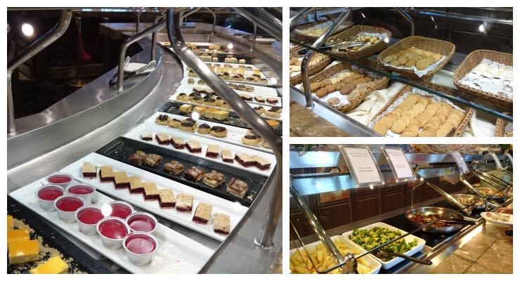 飛行機の旅では、機内食の時間に眠りこけているとせっかくの食事にありつけないということもあり得るわけですが、船はほぼ24時間オープンしているブッフェが併設されているので(ブッフェが別料金の会社もあるようですが)、寝過ごしてお腹を空かせている必要もありません。その上、ブッフェなので「あ~またスリランカ航空はカレーかあ…今日はカレー気分じゃないのになあ」ということも起こりえません。食べたいものが食べられるからね!!