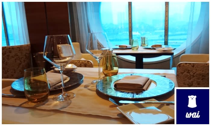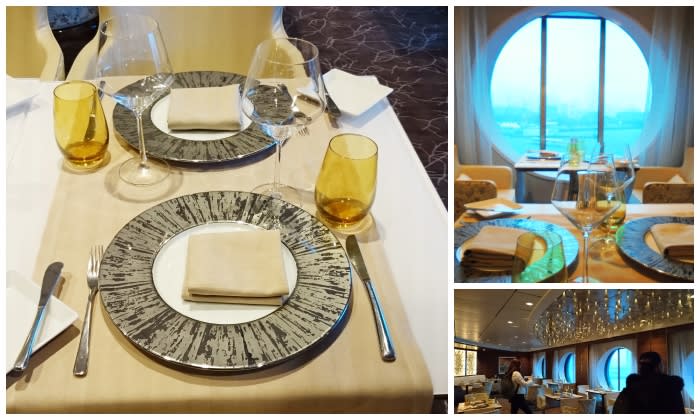 スイート専用ダイニングも見学させていただきました。こちらも「ブルー」と同じくらいの大きさのお部屋。テーブルウェアはさらにラグジュアリーな雰囲気になっています。