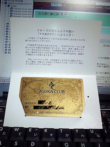 これに記入して、船のレセプションに提出すると、後日、事務局から会員証と、乗船