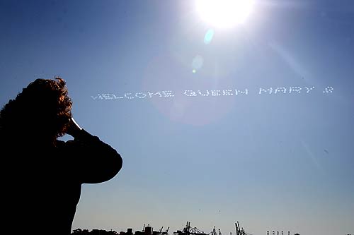 望遠レンズの圧縮効果もあるので近く見えますけど、かなり遠かったようですよ。私はてっきりQMの横のカーニバルの桟橋に接岸するのかと思ってました。8m級の喫水を持つカーニバルレジェンドとかが入ってこれるので、QM2も大丈夫なんじゃないかと思ってましたが、さすがに10m級のQM2は 無理だったようです。