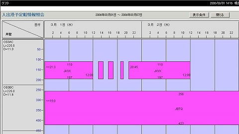 まずは何時、どんな船が来るかっていう情報ですが、まずはこれでスケジュール
