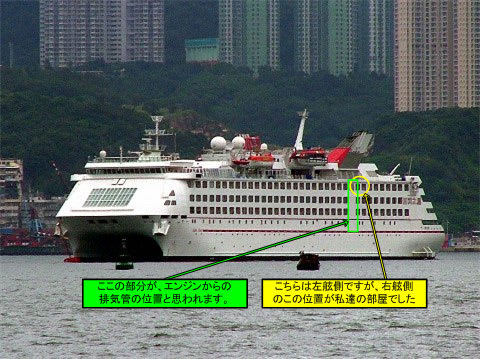 この船、後方のキャビンって、排気塔の配管があるみたいで、かなり