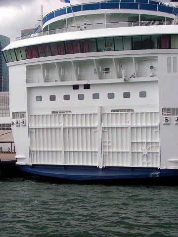 北欧型の船尾にカーデッキへのアプローチが在るタイプなのが解ります。