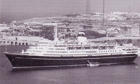 マルコポーロになったのは1990年代に入ってからですから、cruise_qm2さんが見られた船がマルコポーロっていう船名だとしたら違うと思います。あと、こういう船だったということだとしても、5隻姉妹船があるので、どれだかを特定するのは難しいですね。色は緑だった時代があるのかは私の持っている資料では解らないです。skyblueさんの記事で、1980年代のプーシキンのカラー写真が載ってますが、あれって、緑なんですかね????