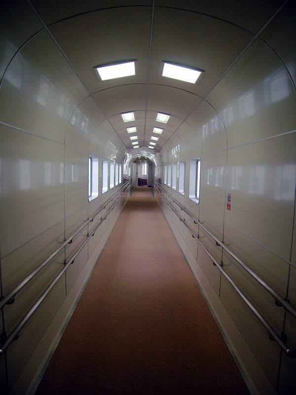 中突堤ターミナルから船内へのボーディングブリッジ内部