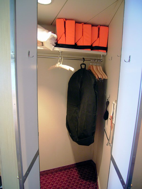 20件こういう形で内部を見るのは初めてです。クロゼットの上のオレンジはもしや救命胴衣?飛行機のように、乗船時にスタッフから使用法などを教わったり、避難経路の説明などあったりするのですか?それにしても、船の中とは思えない間取りですね。