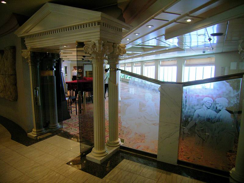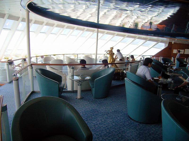 これまで拝見させて頂いて、とても綺麗で豪華な客船ですね^^日本里帰りの際には夫が乗船したがると思います。お値段の方が気になるのと、希望者が多くてそう簡単には乗船できないのかなとも思ったりします^^;ところで、プールサイドにバーカウンターや飲食できる設備がないと言うのは、残念ですね。