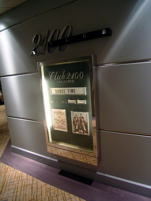 クラブ2100の入り口。今夜のダンスタイムのご案内が出てました。