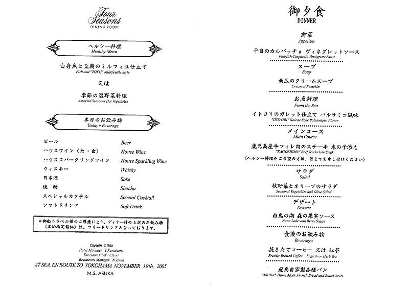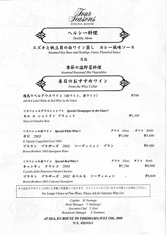 せっかく良いハードを運航しているんですから、やはりソフトも比例して良いものを一日も早く提供して欲しいですね。しかし、メニューが選択できないっていうこの日本船共通の食事の問題。何とかならないんですかね?