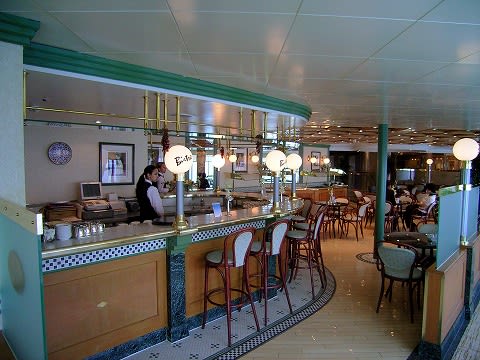 こう人があまり写っていないのも、Ⅱの大きさの成せるところなのですね。やはり食べたいものを食べたいときにすぐ!というのは贅沢なクルーズには必須でしょうね。ただ、その際にいちいちお金を払うのは大変ですよね。やはり全て込みの料金だと面倒が無くていいと思うのですけれど。セルフランドリー、まさかこれも¥600とか?(笑
