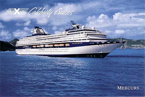 代表的な船としてセレブリティのマーキュリーの絵葉書を貼っておきます。