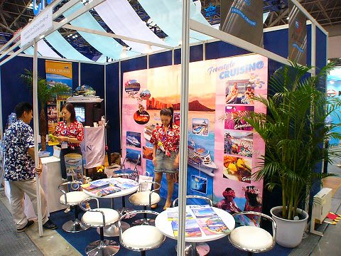 有料なんです...(^^;) でも、元は充分取れますよ。販促品やらプレゼントやら、クイズラリーの商品やらで、帰る頃には宅急便で送りたくなるほどの荷物になります...(^^;) クルーズ会社はいっぱいあります。この旅行博に出展しているような会社は大手クルーズ会社の一部にすぎません。