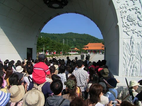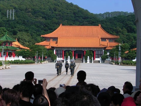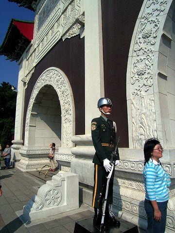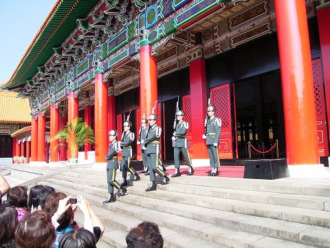 台湾は韓国同様、徴兵制だそうで。中でもこの衛兵さんはエリートなんだそうです。何代も遡って瑕疵を調べるそうです。あと、身長が180cm以上でないとダメとか。