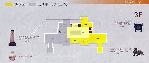 館内図の灰色の部分が工事中で入れません。黄色のところだけ。