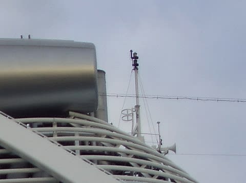 ランダムから興味深く拝見しました。たしかに大型船になるとエアードラフトの高さによっていろいろな制約に注意ですね。実際はその場所での潮位やトリム、ドラフトなども影響されるでしょうが。 商船では、起倒式のアンテナが設置されています。それにしてもよくぞマニア好みの写真を撮りましたね。♪
