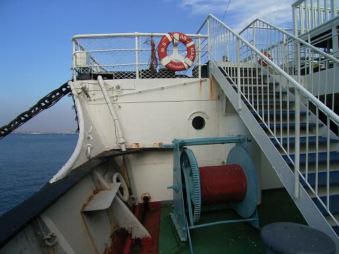 碇を巻き取る装置などが点在する氷川丸の船首の部分になります。映画「タイタニック」で有名になった、いわゆる「タイタニックポイント」も一応、あります。スケール感が違いますけどね。