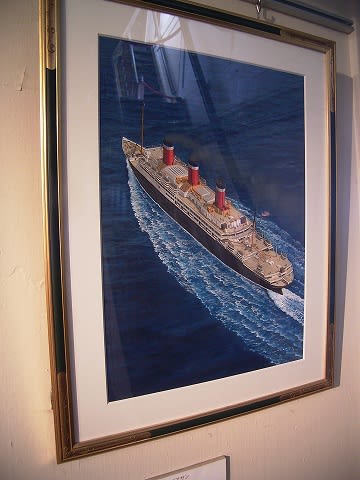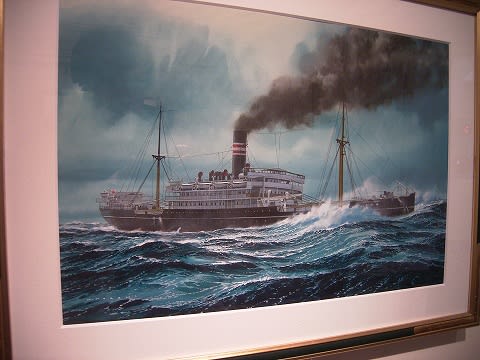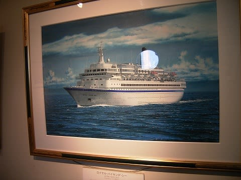 船舶画家、野上隼人(のがみはやと)氏の絵画展示コーナーが、ブリッジ下にあります。野上氏は当初船舶設計技師を目指していたというだけあって、その絵画の正確さ、精密さは、まさに船を知り尽くしている画家ならではといえるでしょう。作品は氷川丸以外ももちろんあります。
