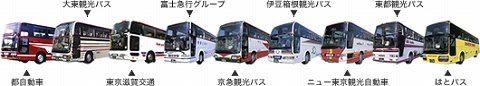 都自動車、大東観光バス、東京滋賀交通、富士急行グループ、京急観光バス、伊豆箱根観光バス、ニュー東京観光自動車、東都観光バス、帝産観光バス、東京ヤサカ観光バス、クリスタル観光バス...