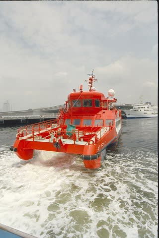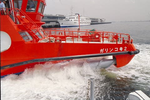 この船の特徴は、なんと言っても船首のアルキメディアンスクリューですが、運行にもそれなりのノウハウがあるようです。以下、船長さんの談話から。