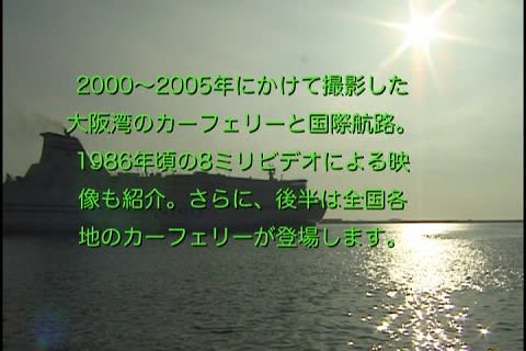 前半は大阪湾発着の長距離フェリー。 主に岸壁から到着・出航シーンを撮影。 1986年頃の8ミリビデオ映像をはさんで、後半は全国のカーフェリーが納められています。 発売 ないねん出版 ( http://homepage2.nifty.com/nainen/) ISBN978-4-931374-54-6 C0865 \3,000-(税込み)