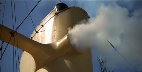 特徴的なファンネルが画面に写るシーン。
