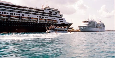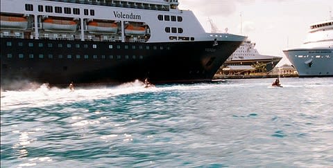 豪華客船そろい踏みな映画ですね。はてさて、水着美女か客船か。どちらに眼を奪われるのでしょうね〜(笑 手前の白黒の船。昨年みたスタテンダムに似ていますね。名前も〜ダムですし。同じ系列なのでしょうね。
