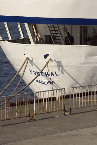 国旗は拡がるタイミングをはかって撮りました。結構、風があったんですよね。ファンネルマークは次のダナエも同じでしたが、フンシャルの方がよく掃除(?)されていて綺麗でした。