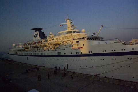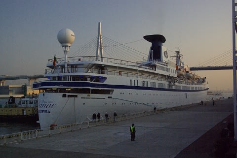前日のフンシャルと比べると、よりクルーズ船らしい成り立ちでしょうか...といっても、この船も元は貨物船ですけど。このクラスが日本の内海クルーズ船として存在しててもいいと私も思いますね。できればリーズナブルに...