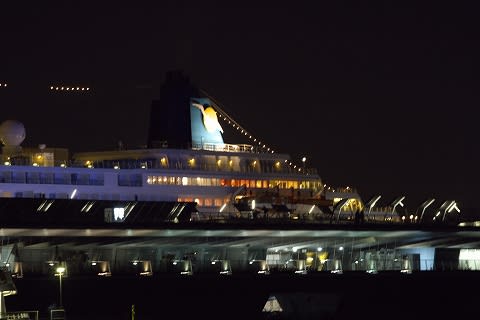 今回は入港時大桟橋も良かったようですね。あの朝焼けは反則だぁ...(^^;) そうそう、書こうと思っていたんですが、汽笛。音量かなり絞ってましたよね。昔はそれこそ飛び上がるくらいでかい音だったのに...そう思いませんでした?