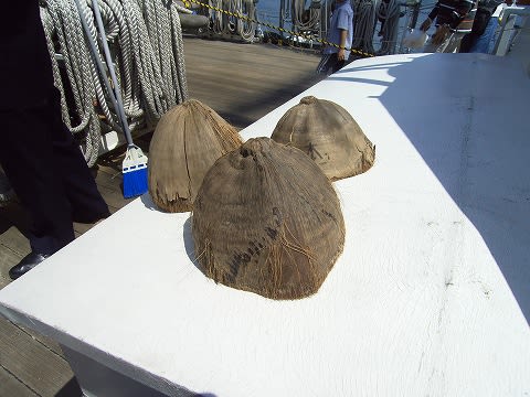 やはり帆船は構造もうつくしいですね。ヤシの実モップで、以前乗った”あこがれ”を思い出してしまいました。贅沢な?クルーズ船もありですが、何でも利用する、リユーズ・リサイクルがしっかりしている帆船はそれだけでも素晴らしいです。