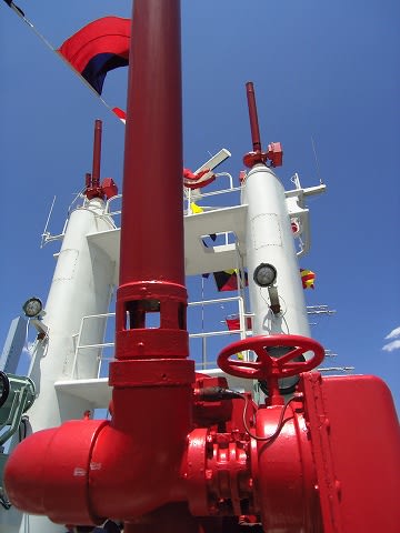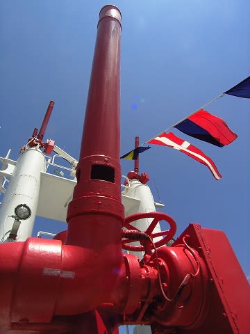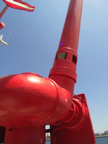 以前の記事で放水模様は拝見しましたが、今回はその主砲ですね。迫力あります。ブリッジから見る放水は見ものでしょうね。しぶきや振動が凄そうですが(笑