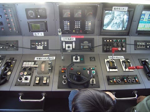 この船は仕様的には陸に囲まれた湾や瀬戸内海のような比較的波の静かな海域をしめす"平水区域"と呼ばれるところを走る船なのですが、船の構造や設備は沿海仕様と呼ばれる外海へ出て行ける仕様になっているんです。なのでそういった機材なども操縦席にはついていますから賑々しくなるんですよね。