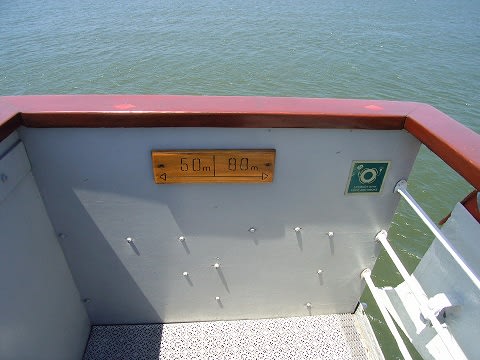 ブリッジのウィング部分。この船の船長は130m。この場所が、船首から50m、船尾から80mの位置にあることがわかります。外から見た印象どおりで、ブリッジはかなり中央よりにあるっていう事ですね。